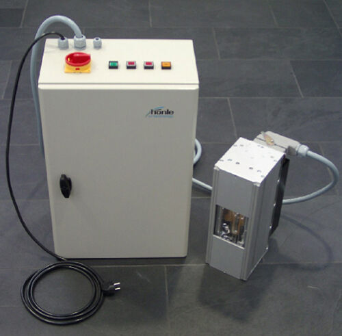 The Honle UVAPRINT 100-200 HPV is a versatile and compact high-intensity ultraviolet radiation device designed for large area curing of adhesives and coatings. It consists of a UV lamp unit and power supply.