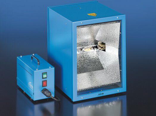 The Honle UVA Spot is available in three power levels: 400 W, 1000 W and 2000 W. The lamp housing can be cooled by fan or convection with a separate ballast box. Where multiple UV lamps are used to irradiate large areas, the ballast boxes can be integrated into one switch cabinet.